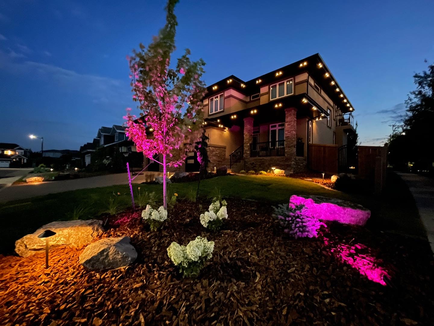Take your home to the next level, with an automated, smart irrigation and low voltage LED lighting system. At APS we install all of our irrigation and lighting systems in house, with no sub trades. This process speeds up efficiency and provides a better value to our clients. Landscape, irrigation and lighting are all installed concurrently to provide the very best in results.