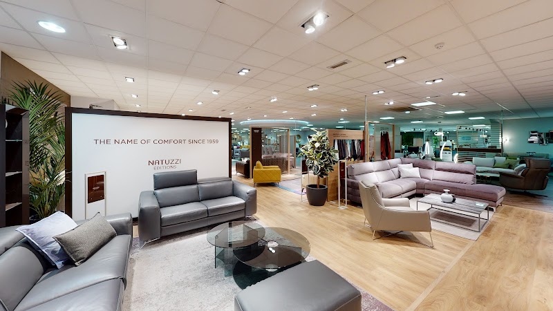 Visit our showroom to see and test furniture in person, including sofas with adjustable headrests and comfortable seating.