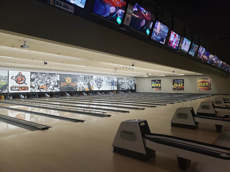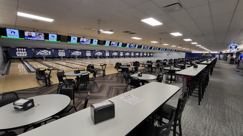 Enjoy modern bowling with bumpers for kids, shoe rentals, and league options in an electric atmosphere.