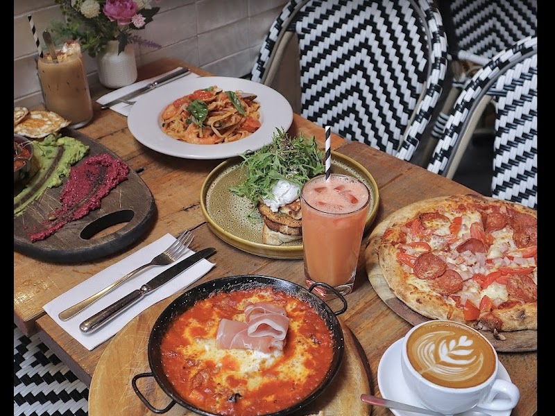 Charming cafe with vintage art, serving hot food, cakes, addictive wedges, chai lattes, and more in a cozy setting.