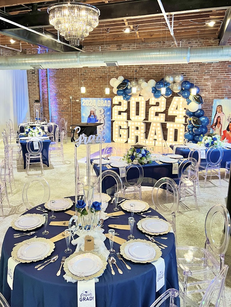 Modern, upscale venue with indoor and outdoor spaces, bar, and flexible layouts for parties, proms, and corporate events.