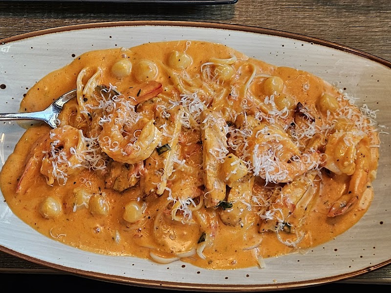 Great place for fresh pasta. It’s clearly made fresh with semolina flour for that unmistakable al dente texture found in excellent pasta. The cheese stuffed tortellini is excellent, I also highly recommend anything with pesto. That said, you really can’t go wrong with any of their sauces. The entree portions are more than enough. We got an appetizer that was excellent but, in all, more food than we could eat. If I was served pasta like this in a white table cloth restaurant I’d be pleased. Finding such excellent pasta in a little, order at the counter, restaurant was an unexpected and pleasant surprise. Next time we’re in the mood for pasta we’ll be back. Note: The front of the restaurant isn’t visible from the parking lots. If you go towards the front door of Texas and turn around you’ll see it right away.