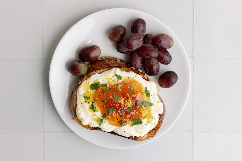 Delicious small bites including ricotta toast, bacon/egg buns, avocado toast, and granola cups.