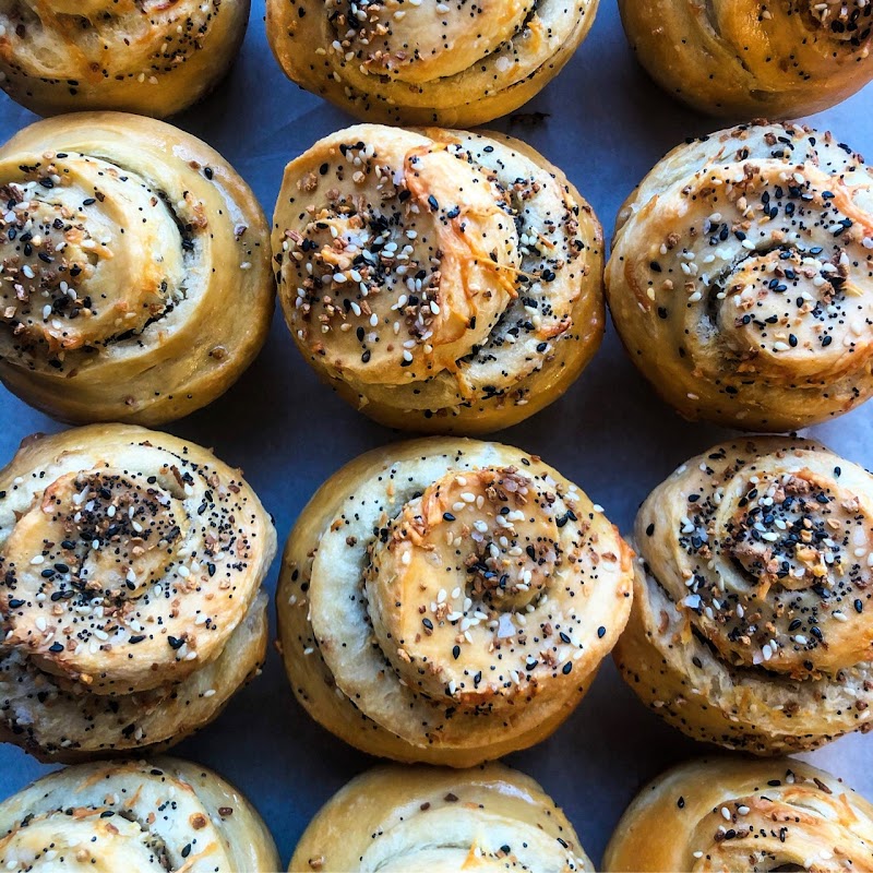 Assortment of baked goods such as rolls, fritters, and other sweet treats.