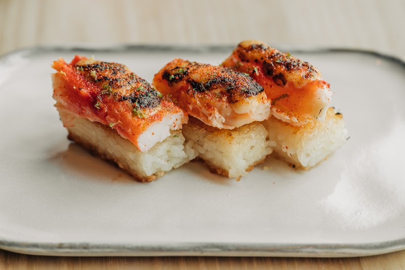 Creative menu featuring birria tacos, crab dip, and other flavorful dishes.