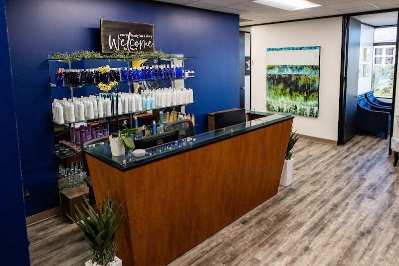 Expert color services, including blending grays and creative color designs, with a focus on hair and scalp health.