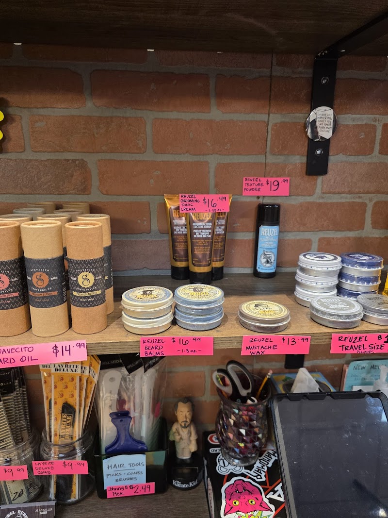 Retail offerings including hair care products, toys, and home goods available for purchase in the salon.