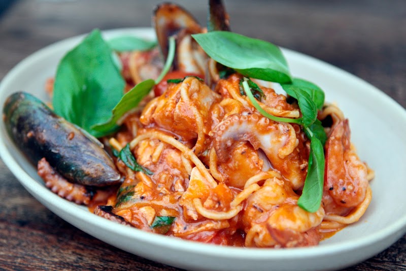 Delicacies such as scallops, calamari, and Moreton Bay bug pasta, prepared with Italian flair.