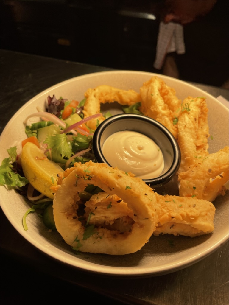 We enjoyed our lunch. Garlic prawns, calamari were delicious as shared entrees. Garlic and cheese bread also very good. Veal with cream and mushroom sauce and spaghetti Bolognese I highly recommend too. We will be back!
