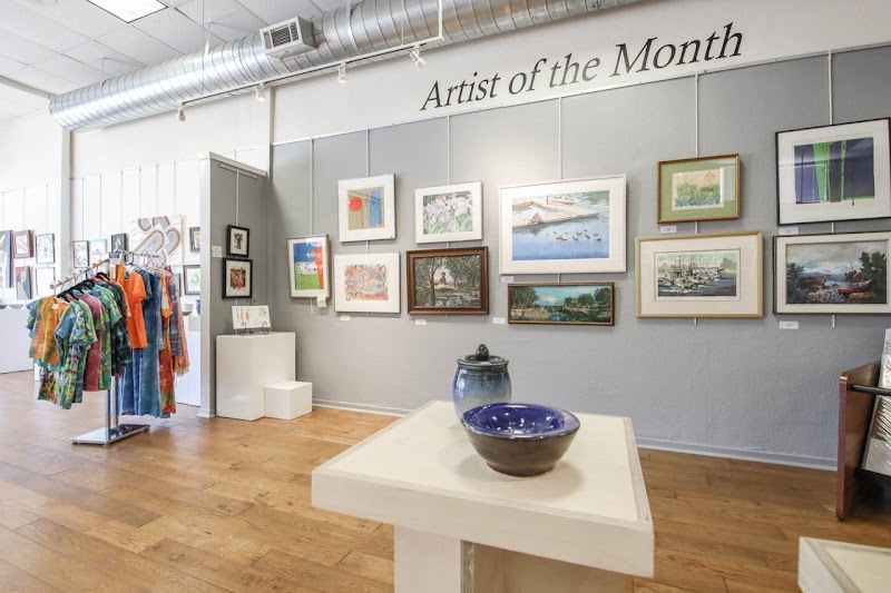 Rotating displays of local and regional artwork in a serene, inviting gallery space.