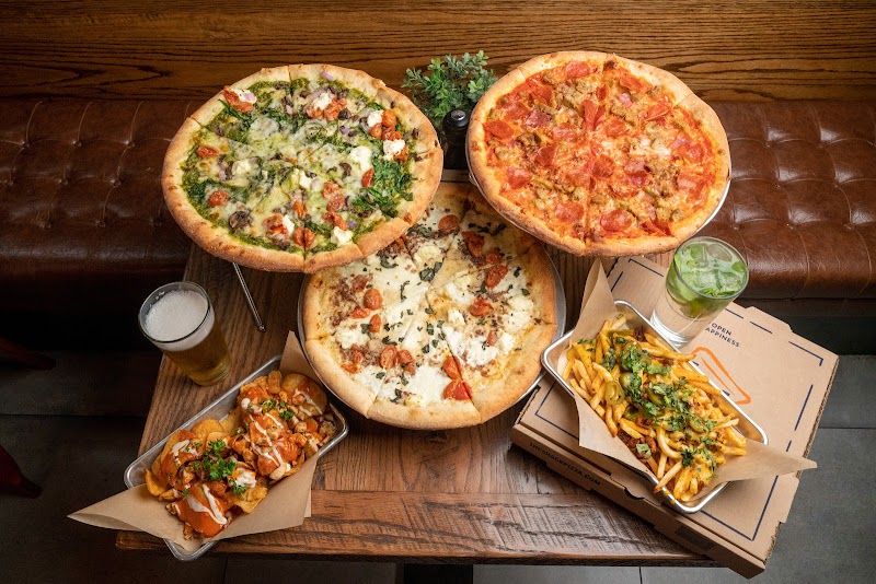 Handcrafted pizzas with a crispy, less bready crust and fresh toppings, available by slice or whole pie.
