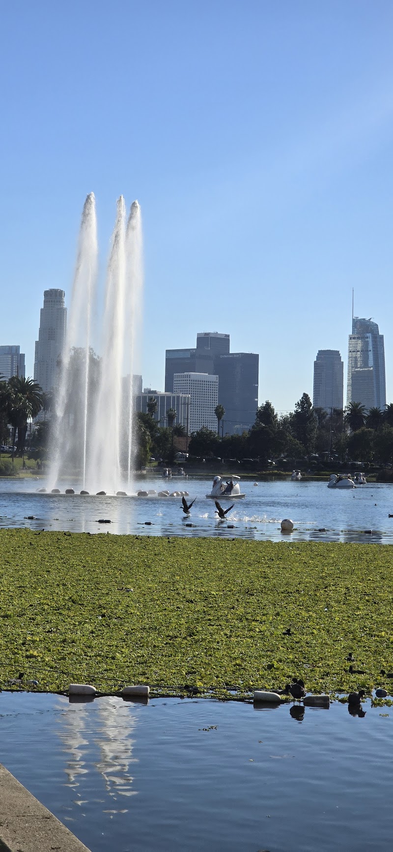 Pedal into magic on iconic swan boats under the LA skyline.