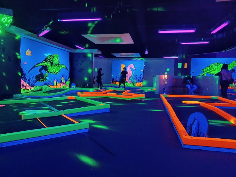 Experience glow-in-the-dark mini golf with laser mazes and arcade fun for all ages!