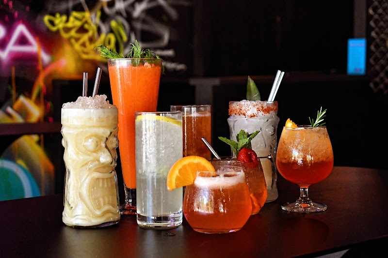 Where craft cocktails meet axe throwing in an artistic, vibrant atmosphere.
