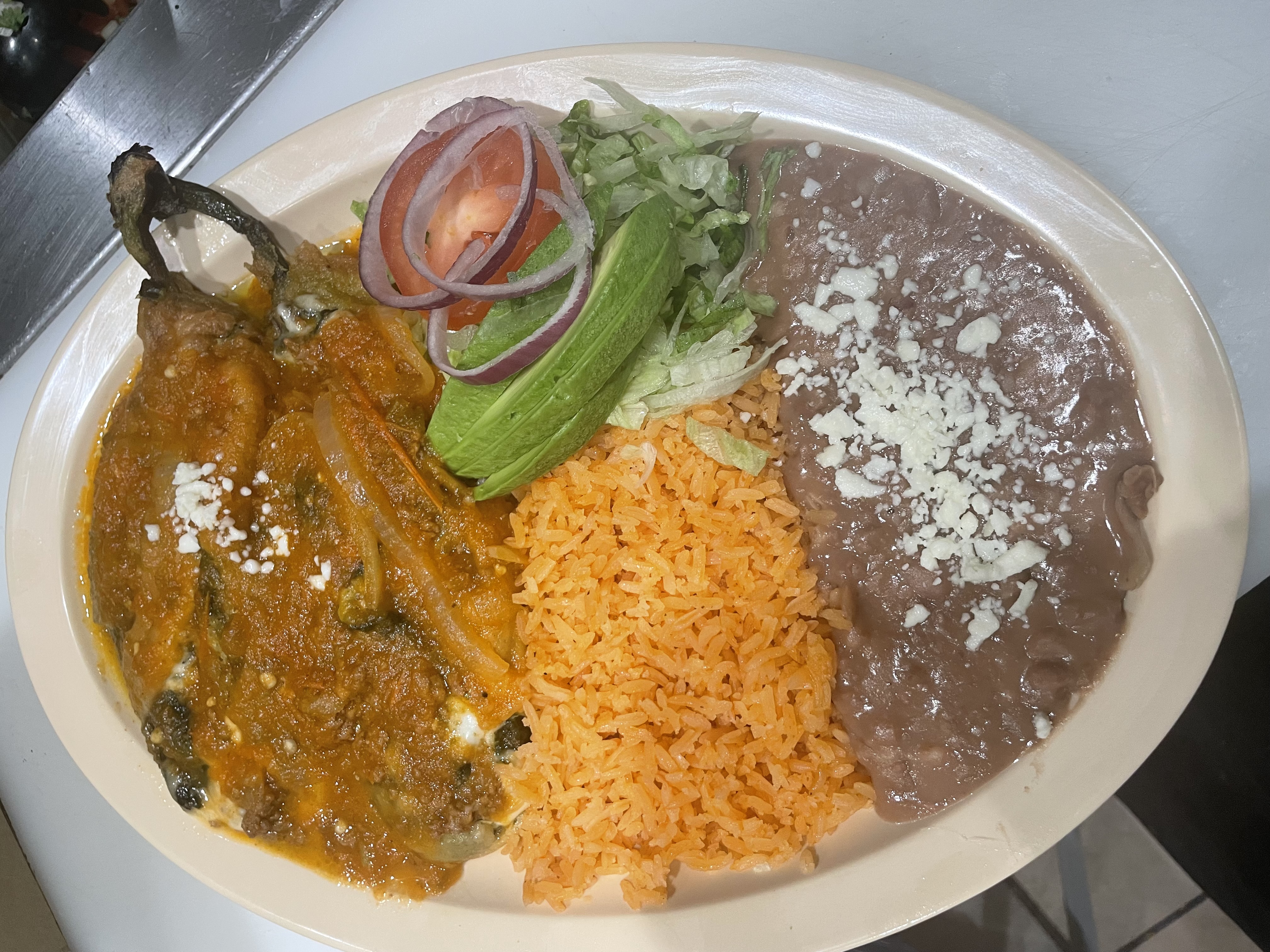 The tacos are chock full of meat. We got the taco dinner with lengua, chorizo, and pastor. The tacos were so good (especially the lengua). The beans and rice were also perfect. I've never had such flavorful beans. The salsa verde enchiladas were also yummy. The chicken inside the enchiladas was juicy and flavorful. Very excited to have them in the neighborhood!