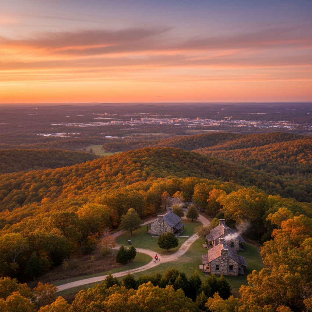 NatureA 2,140-acre mountain oasis overlooking the city, offering over 20 miles of hiking and biking trails, rustic stone cabins, and stunning views of the Tennessee Valley.