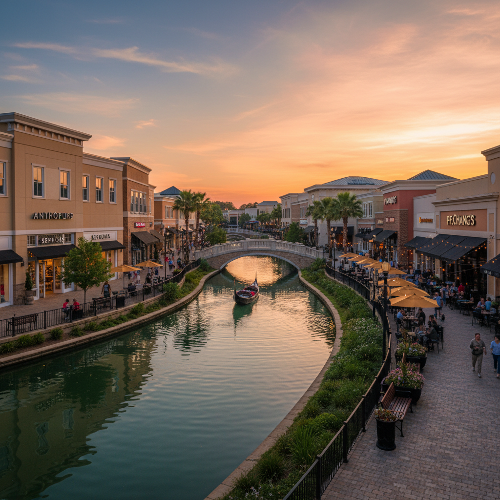 ShoppingAn upscale, open-air lifestyle center with a mix of national retailers, local boutiques, and dining options set around a picturesque lake and canal.