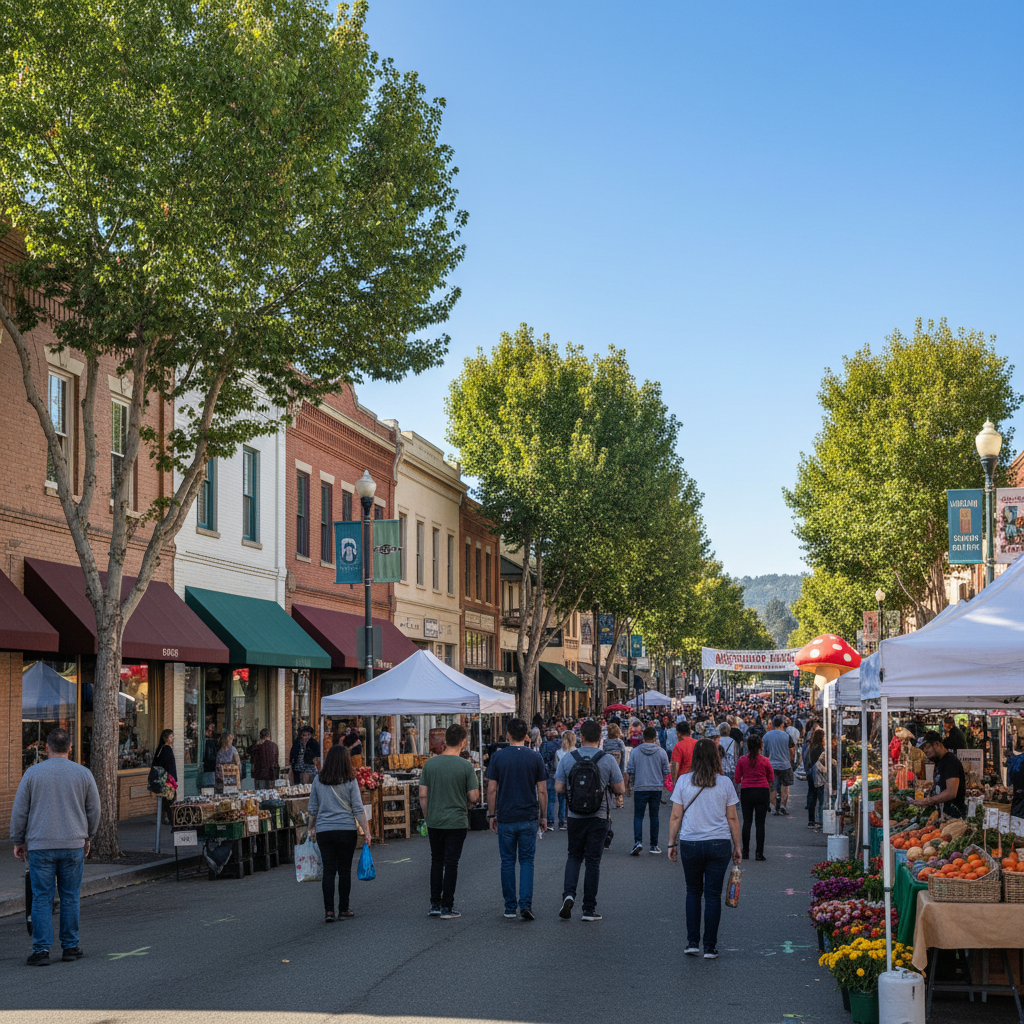 ShoppingThe heart of the city, featuring restored early-20th-century buildings housing local boutiques, tasting rooms, and restaurants. It's the focal point for community events like the weekly Farmers' Market and the popular Mushroom Mardi Gras festival.