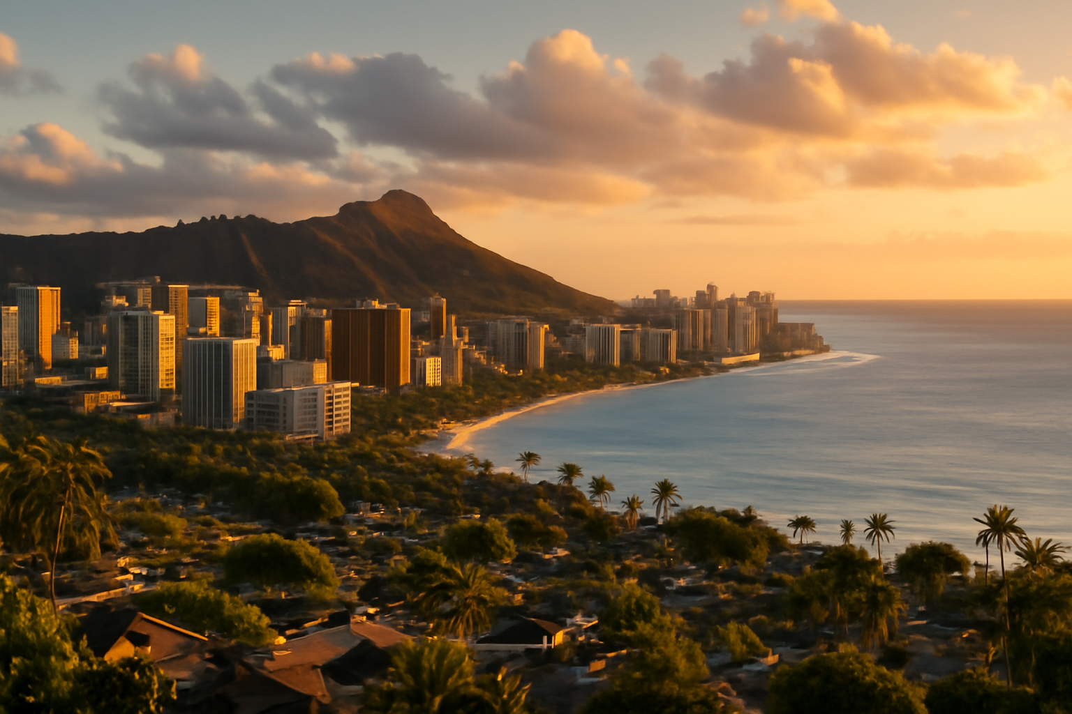 A vibrant Pacific capital where world-famous beaches, rich Hawaiian culture, and lush volcanic landscapes create a unique urban paradise.