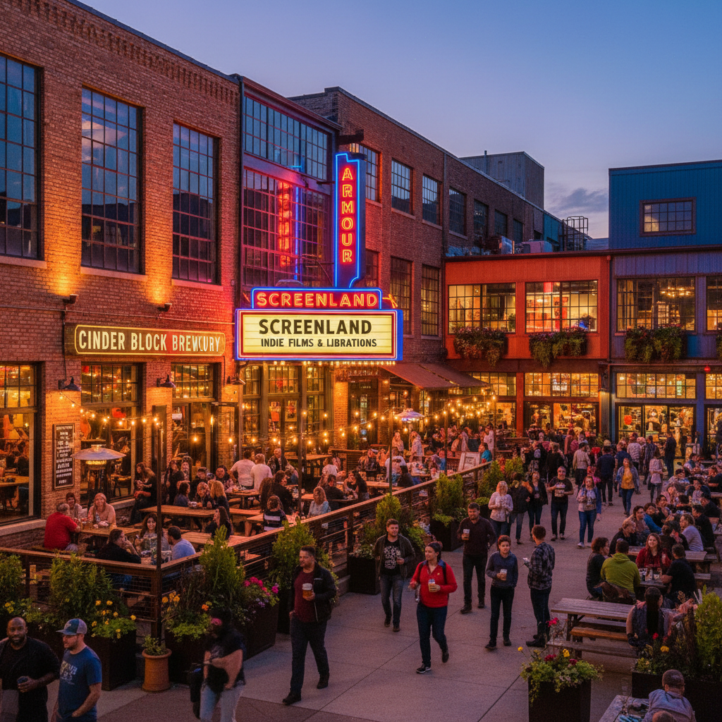 NightlifeThe heart of NKC's revival, this district transforms old warehouses into vibrant destinations. It's anchored by Cinder Block Brewery and Screenland Armour, a beloved indie cinema and bar, creating a perfect evening out.