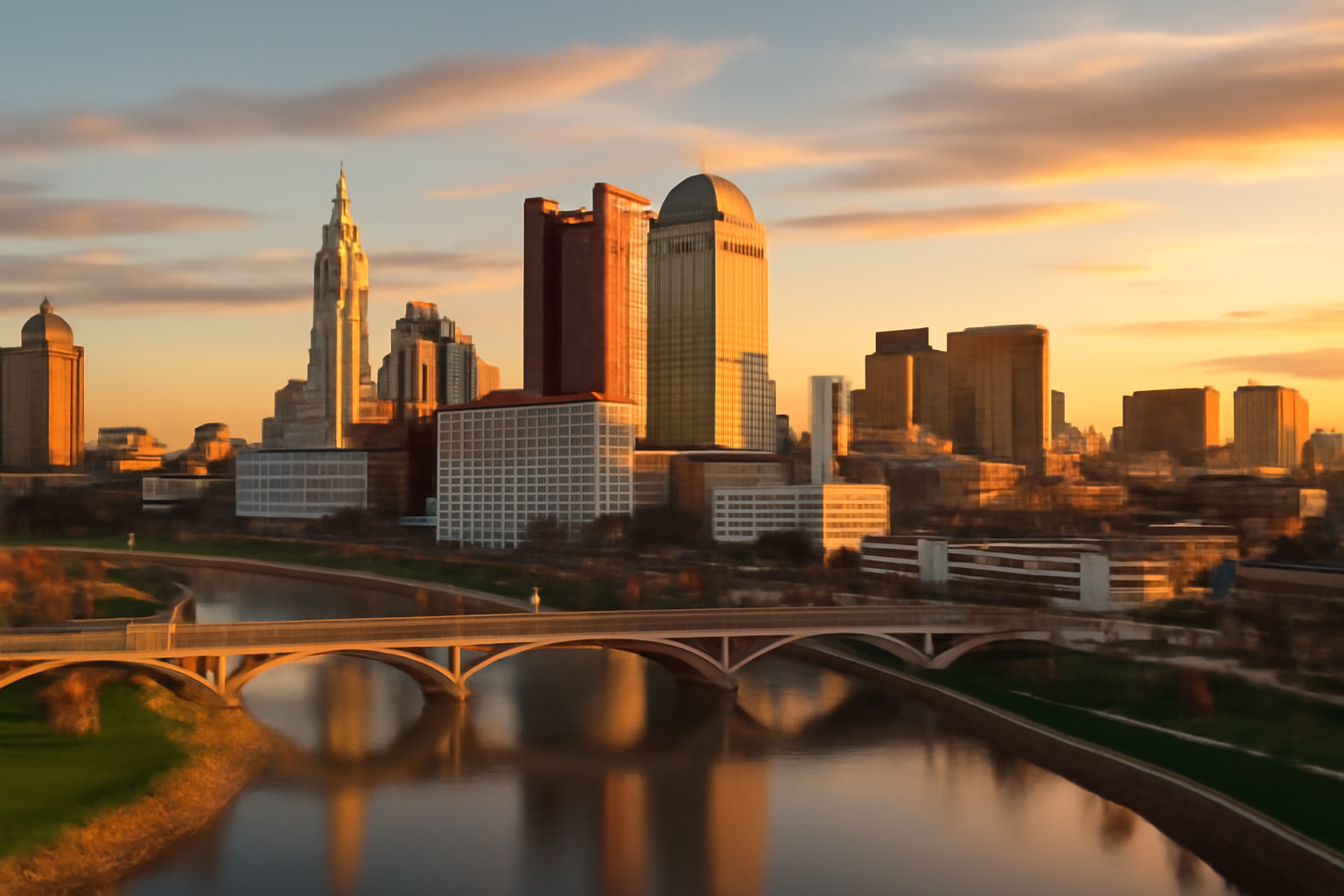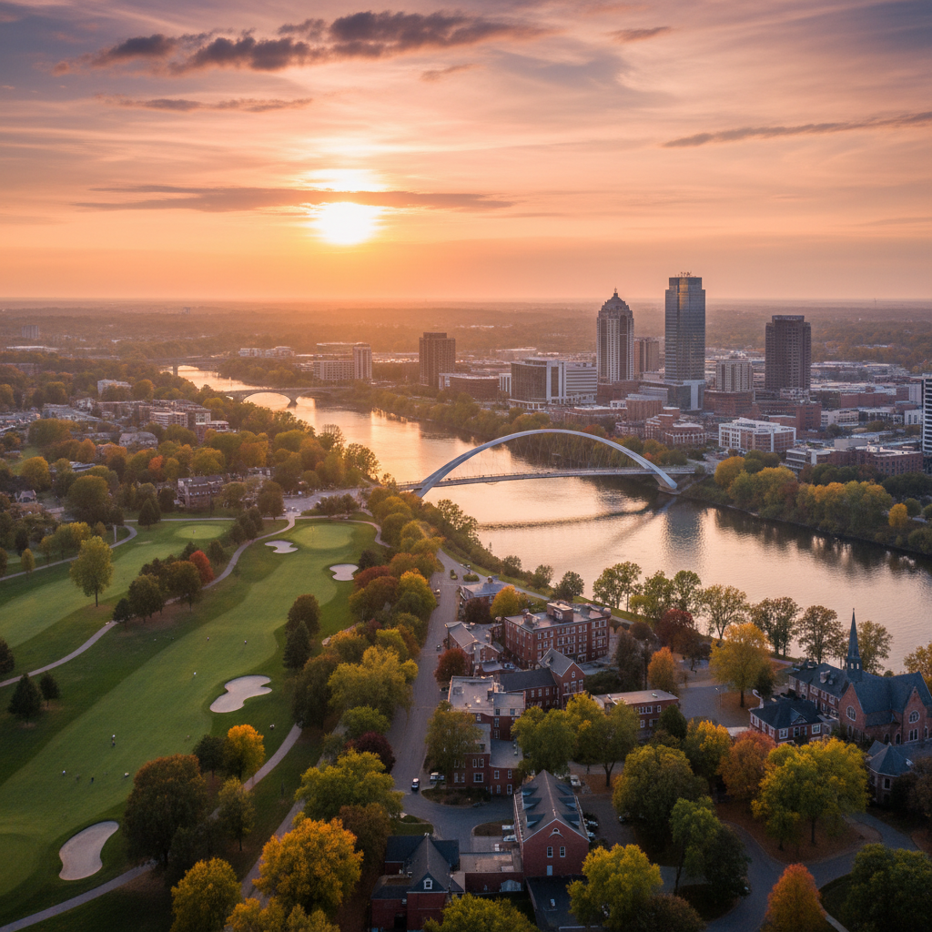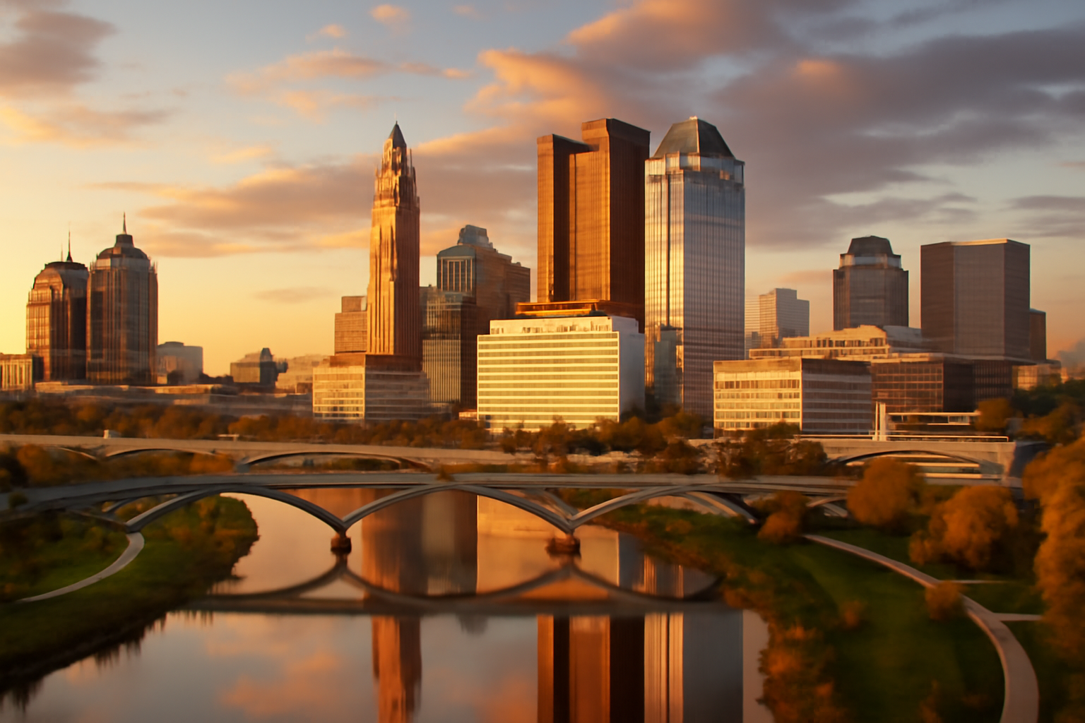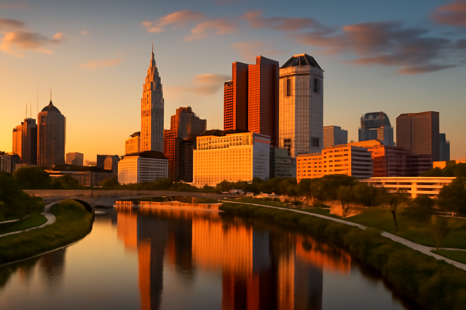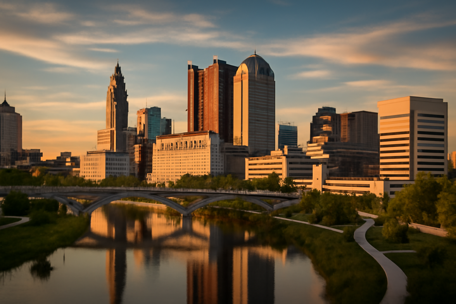 A planned community known for its corporate headquarters, Irish heritage, and extensive network of parks and trails along the Scioto River.
