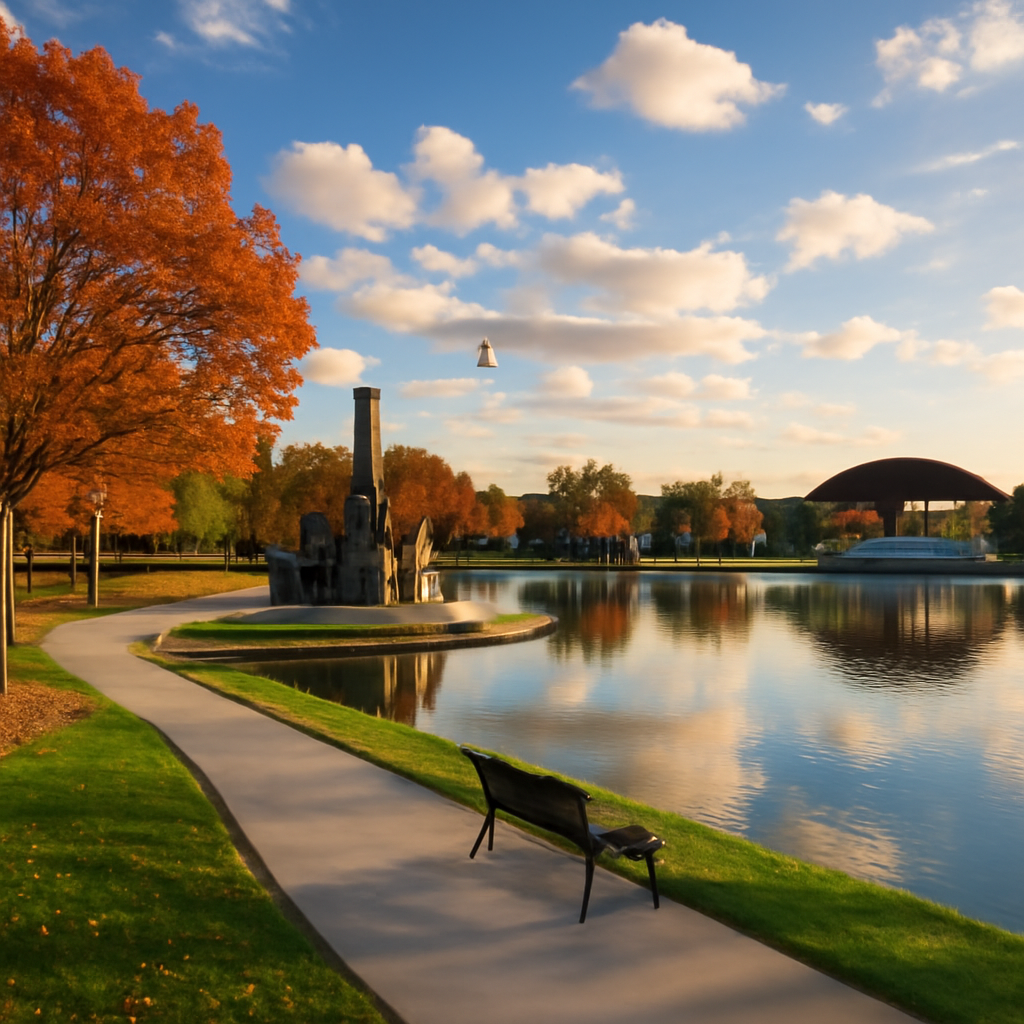 NatureThe city's premier park features a 27-acre lake, walking trails, playgrounds, and the iconic Veterans Memorial. It's the heart of community events like the Fourth of July fireworks and concerts at the Larry North Amphitheater.