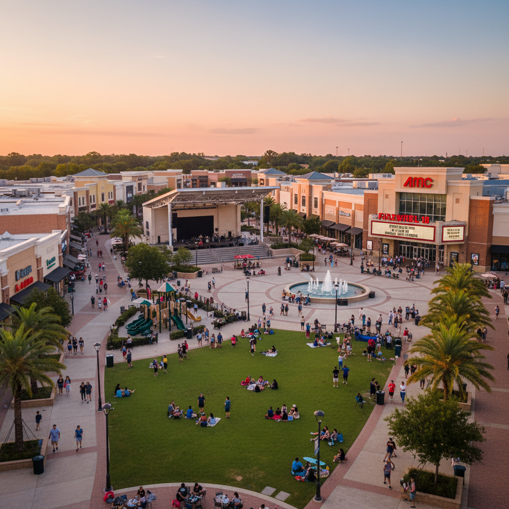 ShoppingMore than just a mall, this sprawling outdoor lifestyle center is a community gathering spot. With a central park, amphitheater for concerts, a movie theater, and diverse shops and restaurants, it's a one-stop destination for entertainment and retail.