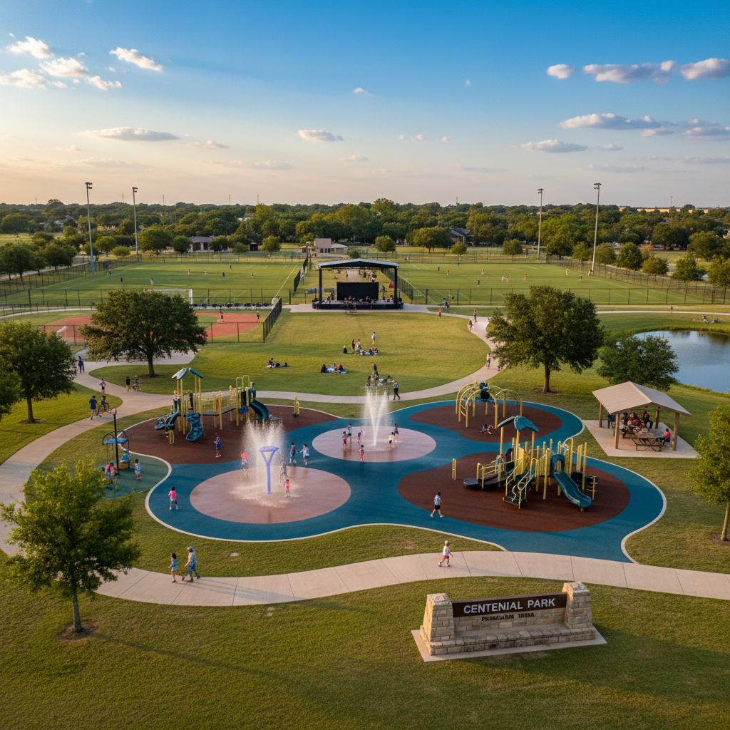 SportsPearland's premier community park features splash pads, playgrounds, sports fields, and picnic areas spread across 100+ acres. The park hosts city events, concerts, and provides green space for recreation and relaxation for all ages.