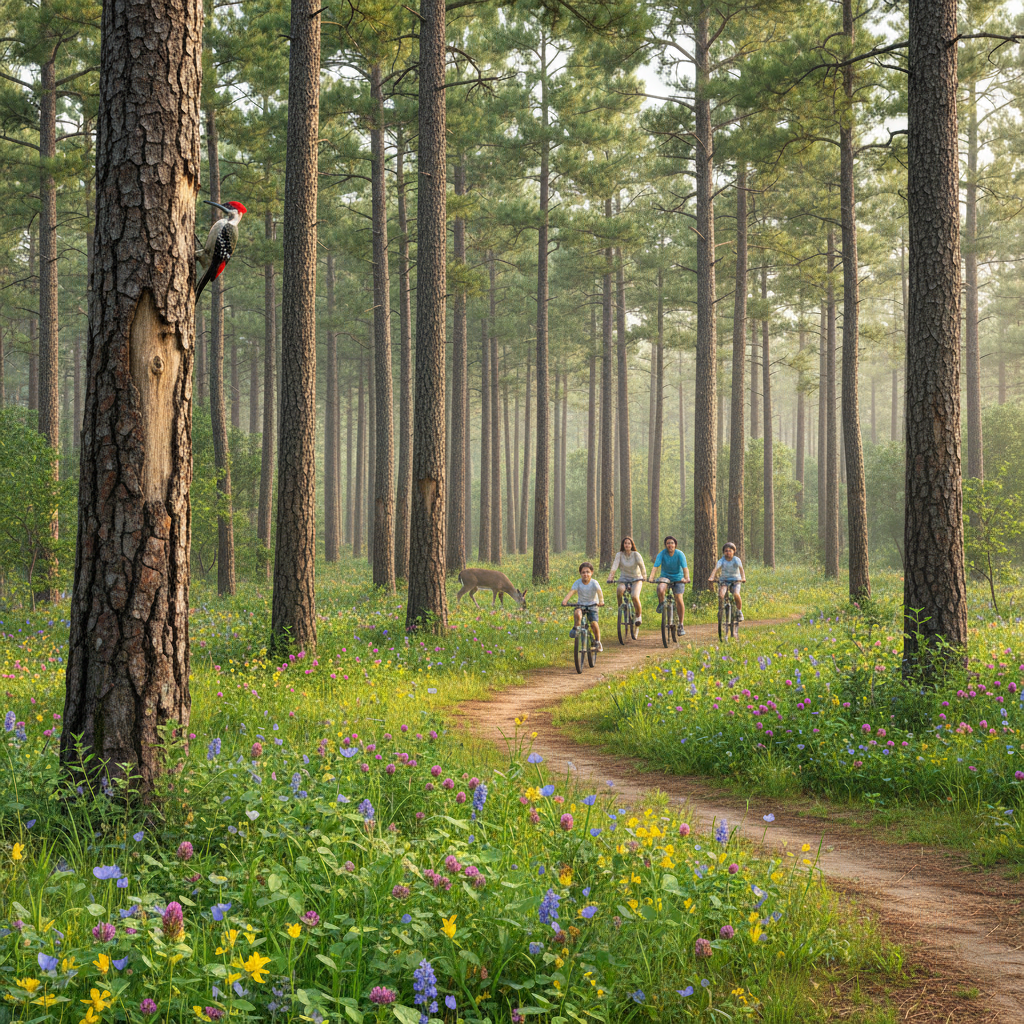 NatureDiscover one of Texas's few urban state forests, a 1,700-acre sanctuary for the endangered red-cockaded woodpecker. Hike or bike the trails through towering pines and spot local wildlife.