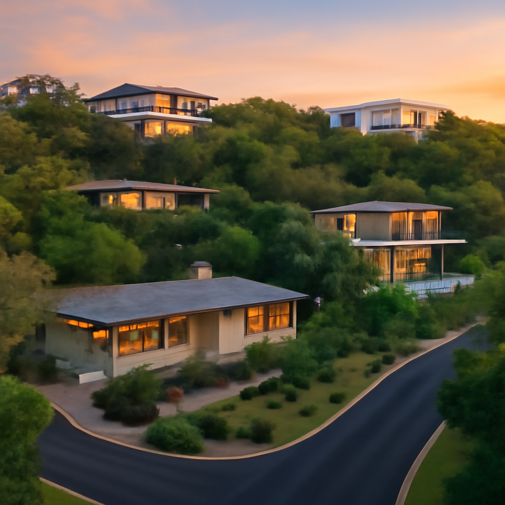 Prestigious EstatesOne of the most exclusive areas featuring multi-acre properties, custom architectural masterpieces, and exceptional privacy. Many homes here offer panoramic views of the Austin skyline and Lake Austin from their elevated positions.